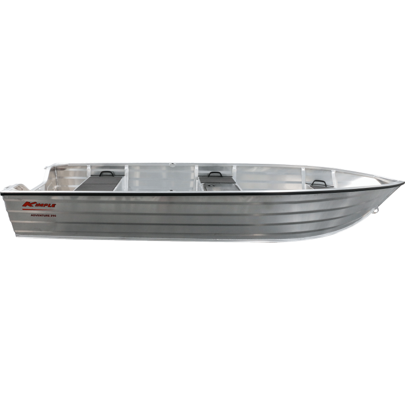 Découvrez la Kimple Adventure 390, une barque en aluminium robuste et légère, idéale pour la pêche et les balades nautiques. Stable et facile à manœuvrer, elle offre un confort optimal pour 4 adultes.
